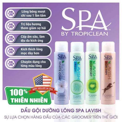 Sữa tắm TROPICLEAN size 50ml dưỡng lông siêu mềm mượt cho chó mèo xuất xứ Mỹ free ship